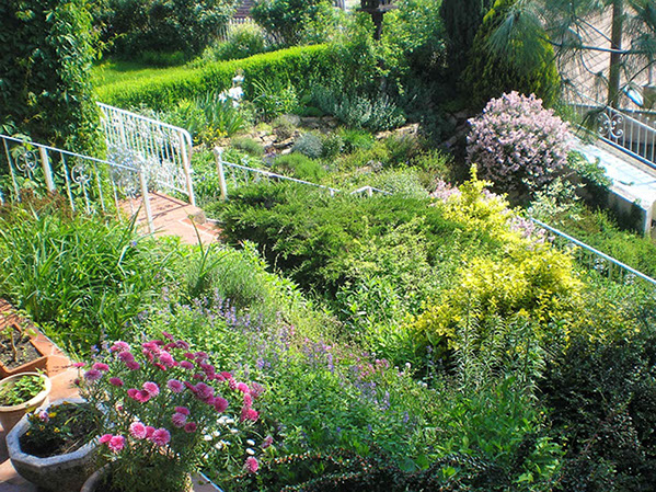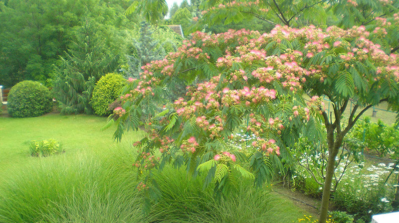Díszcserjéim választékát olyan nagyrészt lombhullató fajok, fajták alkotják, melyek nem okoznak csalódást a(z egyre) szélsőséges(ebb) klimatikus viszonyaink között sem. Díszfáim fajtaválasztékát olyan kis vagy közepes méretű fajták (pl. almák, galagonyák) alkotják többségben, melyek nem növik ki kertjeinket több évtized alatt sem.